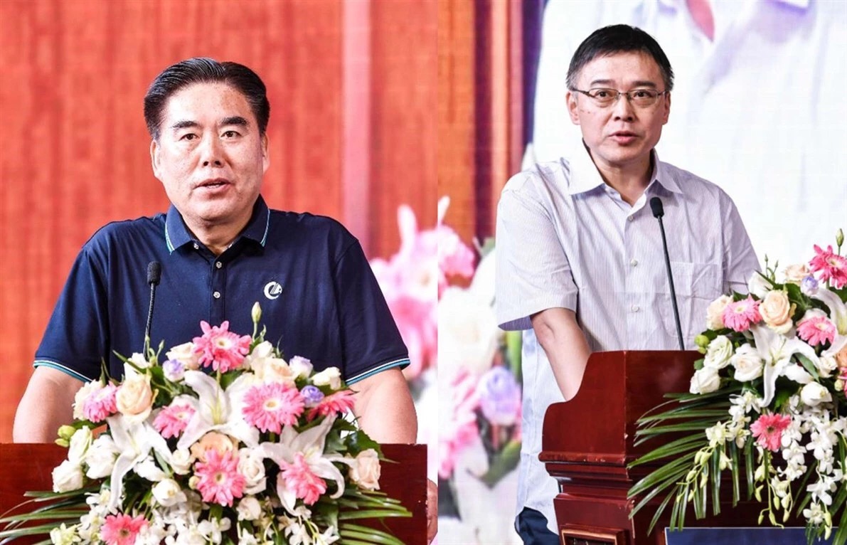 致辭:左為中國畜牧業(yè)協(xié)會會長李希榮,右為農(nóng)業(yè)農(nóng)村部食物與營養(yǎng)研究所副所長王曉紅
