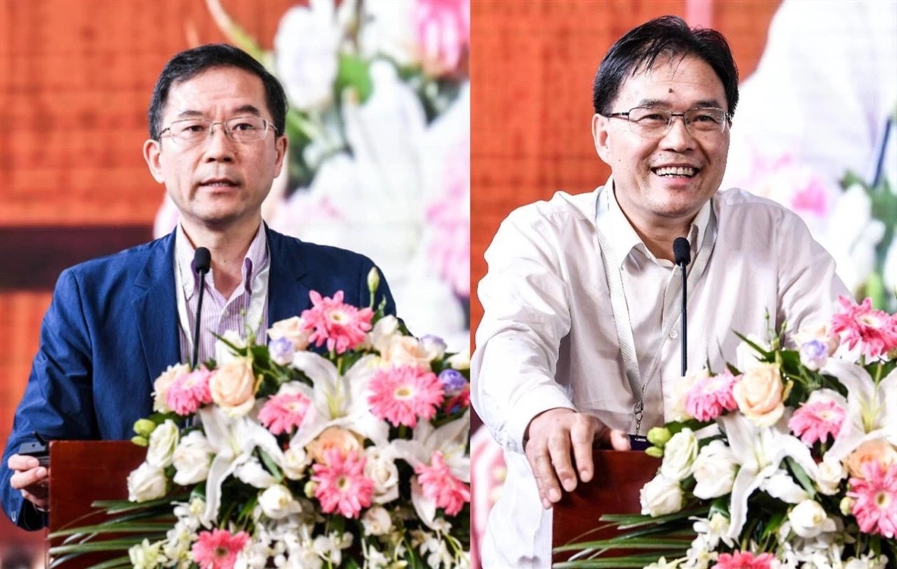 左為中國農(nóng)科院哈爾濱獸醫(yī)研究所豬傳染病研究室主任仇華吉,右為中國農(nóng)科院北京畜牧獸醫(yī)研究所研究員、中國畜牧獸醫(yī)學會信息技術(shù)分會理事長熊本海